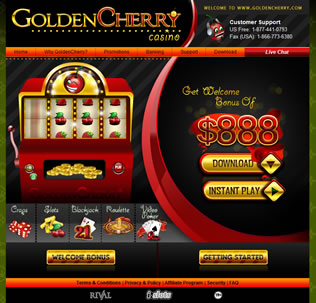Though we do not often dabble in Rival casinos, Golden Cherry Casino has made the cut. As one of the Rival Casinos, Golden Cherry provides some of the hottest games online. Golden Cherry gives their players access to all of Rival's famous slots, many of which carry interesting video and mini-games. Table games are all inclusive, ranging from casino poker to blackjack, as well as roulette, craps and more. Golden Cherry has over 85 games in total, providing players with more fun than even some of the better land based casinos out there.